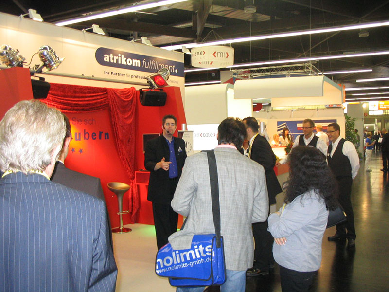 Auf der 2-tägigen Fachmesse mailingtage in Nürnberg war es AbraXas Job diese umfangreiche Dienstleistung einfach und zauberhaft darzustellen. Am Stand wurden die Gäste mit einer Mischung aus Guerilla-Zauber-WalkAct und Messezaubershow in jeder Hinsicht verzaubert. Als Giveaway wurden Zauberstäbe ans Jackett angebracht und es gab eine Zauberkursbroschüre für ein Gutscheinheft.